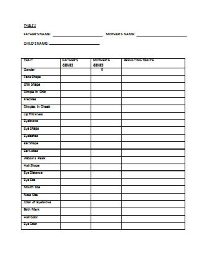 This lab is very flexible as it will work for any level student from English Learner - EL - to more advanced students. Overview In this project me and a partner filled out a chart Figure 1 about our traits. Create a Baby Lab Concluding Questions. We had an experiment recently that put these facts to work and to get an idea of how the genes transfer from the parents to the child. Easy step-by-step illustrated instructions for everything. Stored in the bonds of atoms and molecules 3. Two pennies art supplies paper.